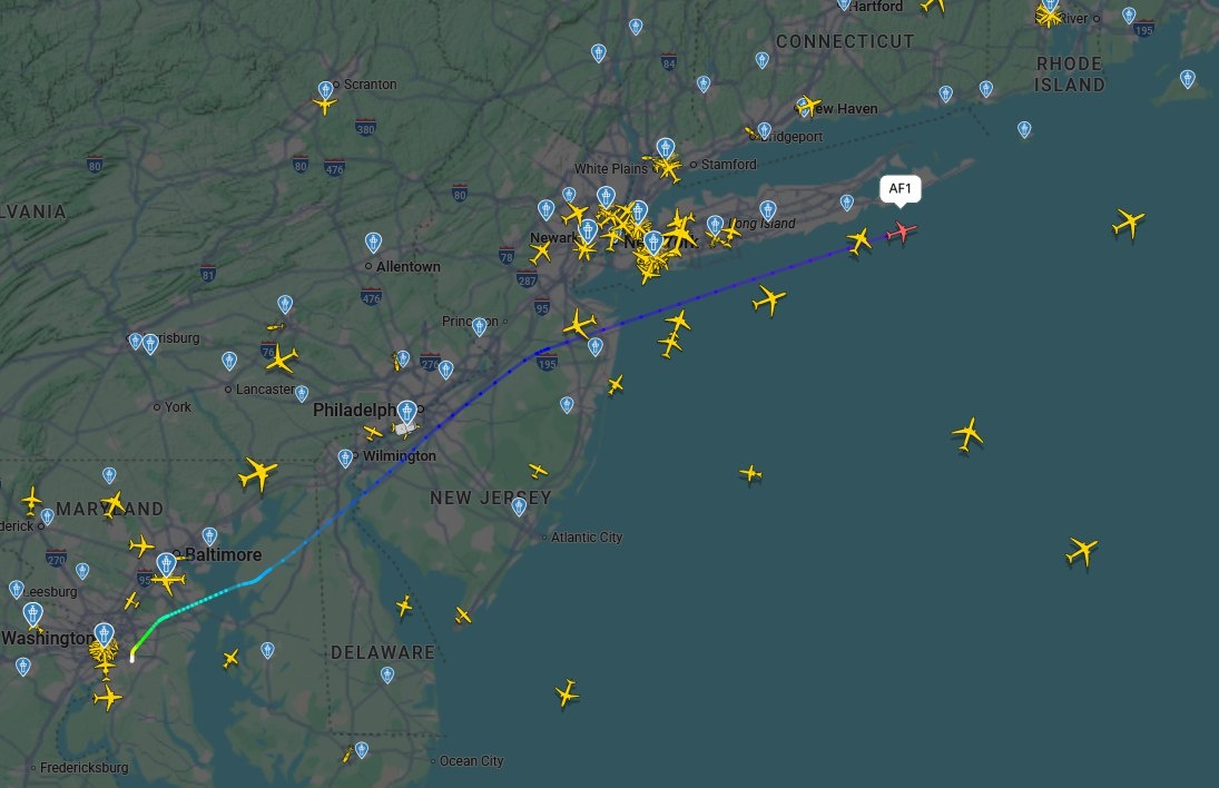 Take two: After plane switch, C-32A as Air Force One with Trump on board departs for Davos