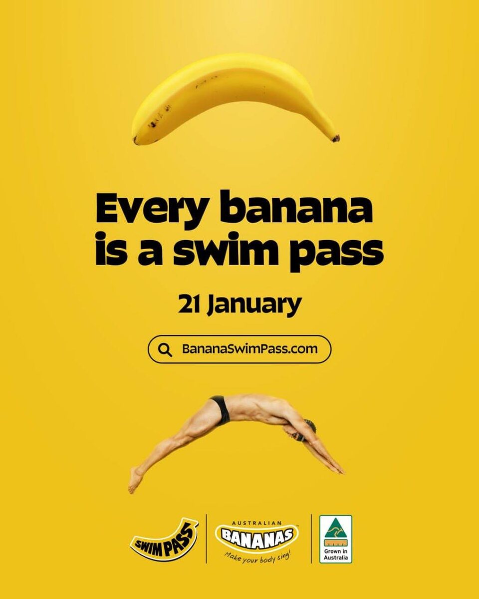 🌞 Сразу две новости: 1. 21 января, только на один день, банан превращается в абонемент на посещение бассейнов по всей Австралии 🍌 2. Австралийское солнце это враг! Об этом убедительно говорит производитель защитного крема 🧴