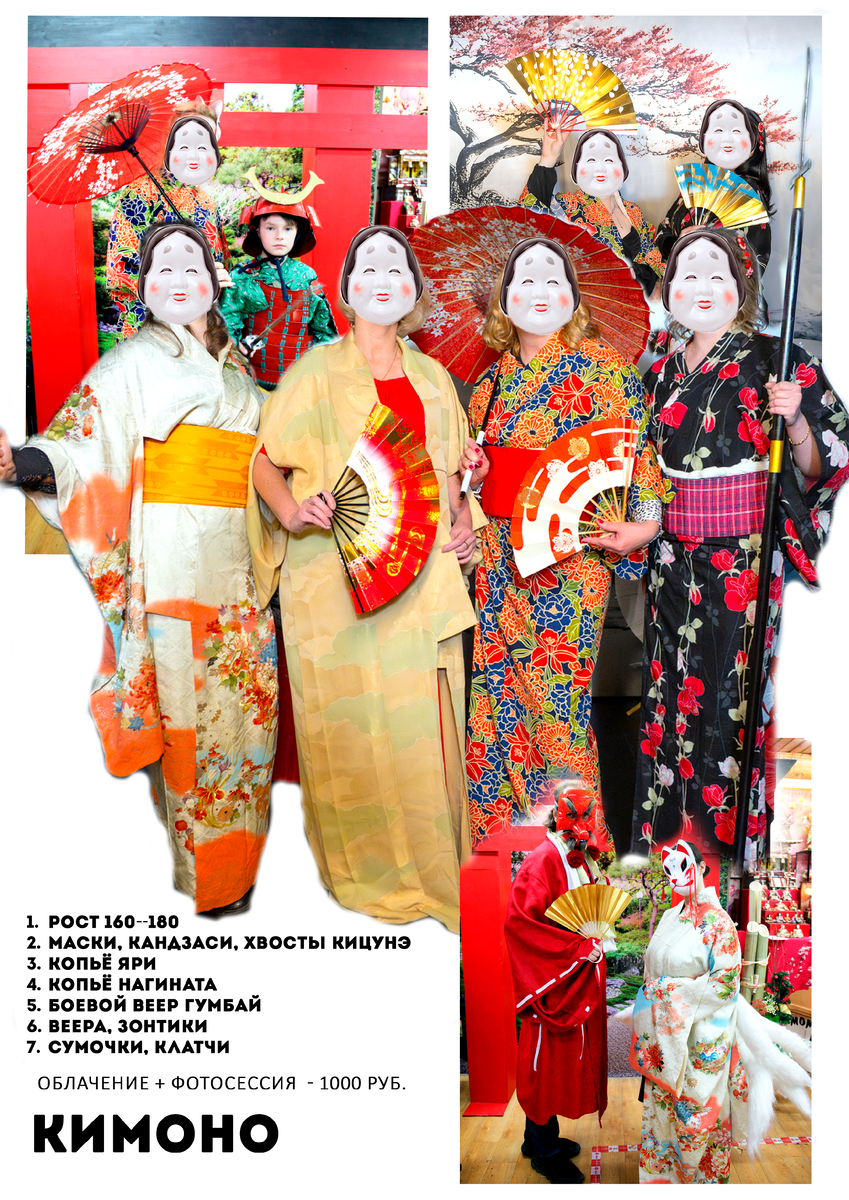 Дорогие друзья, продолжаем знакомить всех интересующихся с нашими японскими костюмами для фото на память. Как вы знаете, все желающие могут бесплатно сфотографироваться, используя маски, веера, сумочки, шлемы и японское вооружение. А вот сложное облачение и съемки можно сделать за дополнительную плату. Сегодня вы можете посмотреть какие возможности и варианты открываются с несколькими вариантами кимоно. Кимоно можно сочетать множество аксессуаров и разных предметов от сумочек, вееров, зонтиков до японского вооружения. Что получается – смотрите сами. Приглашаем посетить наш Музей Кукол МОАК «Кукольный переулок» в Кремле в Измайлово. Коллекция Музея состоит из нескольких экспозиций – авторских кукол, японских традиционных и авторские кукол и истории кукол и игрушек, русских народных кукол и игрушек, антикварных кукол и реплик, портретных кукол. У нас можно пройти литературный квест для детей и взрослых, сфотографироваться на память в разных японских образах, на мастер-классах можно распи