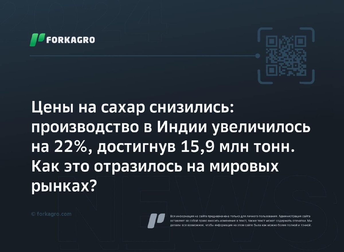 Как это отразилось на мировых рынках? Согласно отчету Barchart, цены на сахар снизились в Нью-Йорке и Лондоне: фьючерс на сахар-сырец №11 упал на 0,24 цента, а контракт на белый сахар №5 потерял $5,30. При этом производство сахара в Индии увеличилось на 22%, достигнув 15,9 млн тонн в текущем сезоне 2025–26 — данные ISMA. Перейти к источнику