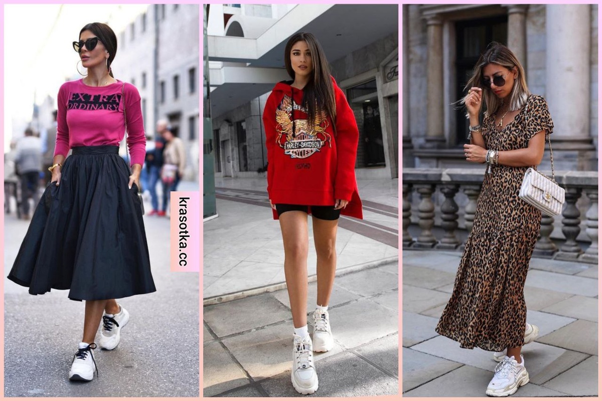 Белые женские кроссовки давно перестали быть исключительно спортивной обувью. Сегодня они — неотъемлемая часть повседневного гардероба. Их носят на прогулки, свидания, встречи с друзьями и даже на работу. Главное преимущество белых кроссовок — их универсальность. Правильно подобранная одежда превращает их из спортивной обуви в стильный элемент образа. Белые кроссовки хорошо комбинируются с разными стилями одежды, они хорошо выглядят с романтичной, уличной, деловой и спортивной одеждой. Все бренды выпускают белые кроссовки, поэтому модницам есть из чего выбрать. Например, актуальны белые суперстары от Adidas, белые кроссовки на платформе, модель Air Force от Nike, кроссовки от Stan Smith, массивные модели белых кроссовок от Chanel, Puma, Balenciaga и других известных модных домов. Лучше всего с разной одеждой сочетаются классические модели с круглым носом и не очень массивной платформой, они отлично впишутся в образ с юбкой, платьем и даже брючным костюмом. Чем проще и лаконичней белые