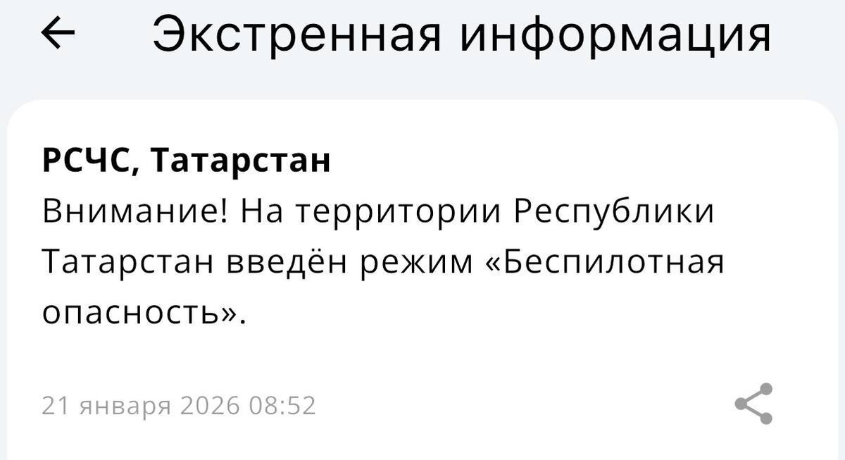⚡️ Режим беспилотной опасности объявили в Татарстане