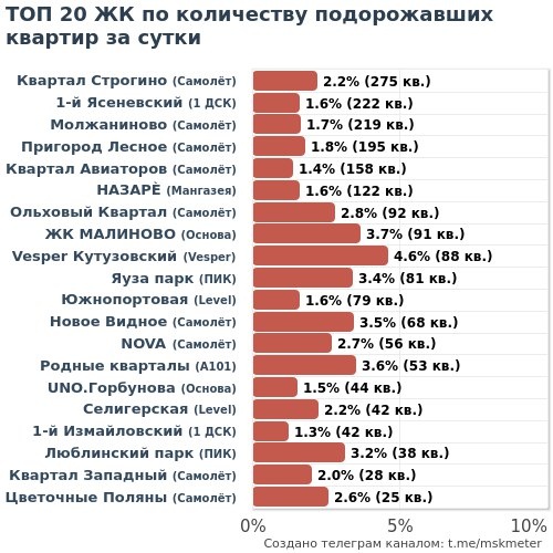 ) 🏆 ЛИДЕРЫ ПО РОСТУ: ПИК 19 ЖК 225кв +10,6% Самолёт 15 ЖК 1202кв +3,3% Level 7 ЖК 139кв +3,1% 1 ДСК 6 ЖК 273кв +1,7% Гранель 5 ЖК 5кв +1,8% Брусника 5 ЖК 15кв +5,1% MR Group 4 ЖК 24кв +2,1% Основа 3 ЖК 146кв +2,1% A101 3 ЖК 60кв +2,8% ЛСР 3 ЖК 6кв +8,2% 👇 Полная статистика: 📲 В Telegram — быстро посмотреть 🌐 На MskMeter.ru — графики цен и скидки за любой период
