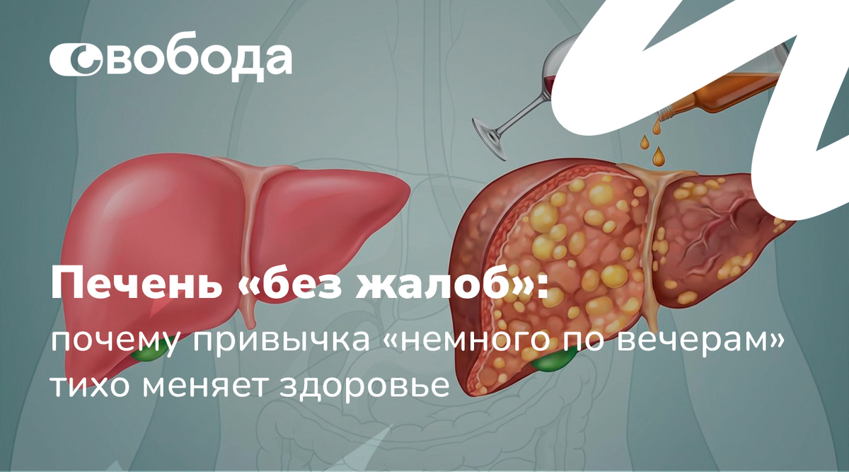 На приёме нередко встречаются одинаковые истории: человек живёт ровно, без «загулов», работает, справляется с делами — а на УЗИ печень уже «светлее», биохимия крови сместилась, утро стало тяжёлым. Это про орган, который долго терпит и молчит, а потом сразу «предъявляет» последствия регулярных вечерних рюмок и коротких ночей.