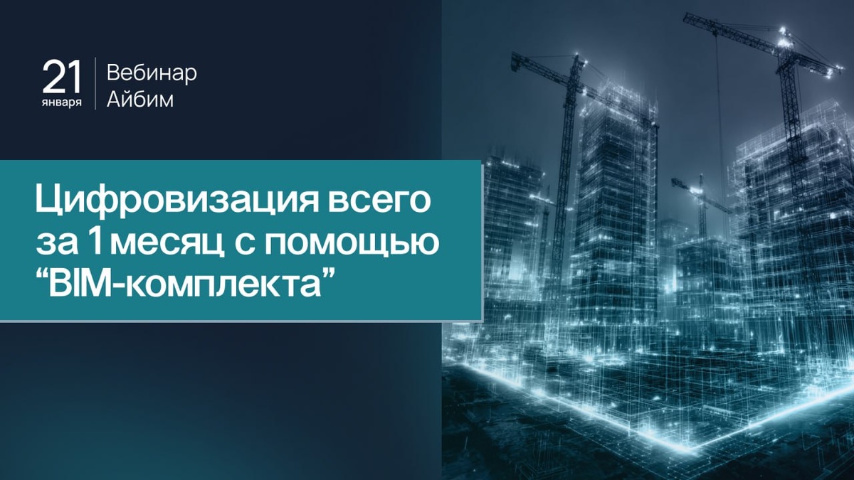 позволит сэкономить бюджет, сохранив качество работ. 📆 21 января в 16.00 МСК на вебинаре эксперты разберут каждый компонент и обсудят эффективность его внедрения: 1️⃣Типовой справочник видов работ и правила расчета. Обеспечивают быстрый переход компании к единой терминологии и автоматический расчет объёмов работ. 2️⃣EIR — требования к BIM-моделям с учетом типового справочника. Выполнение этих требований позволяет получать качественные BIM-модели от подрядчиков. 3️⃣Готовые шаблоны проверок. Позволяют автоматизированно проверить BIM-модель на соответствие цифровым требованиям, полноту атрибутивного состава и отсутствие коллизий. Вы узнаете, как начать использовать BIM-комплект, и какие результаты можно получить уже в этом квартале. Участие бесплатное Регистрация по ссылке ⬅️