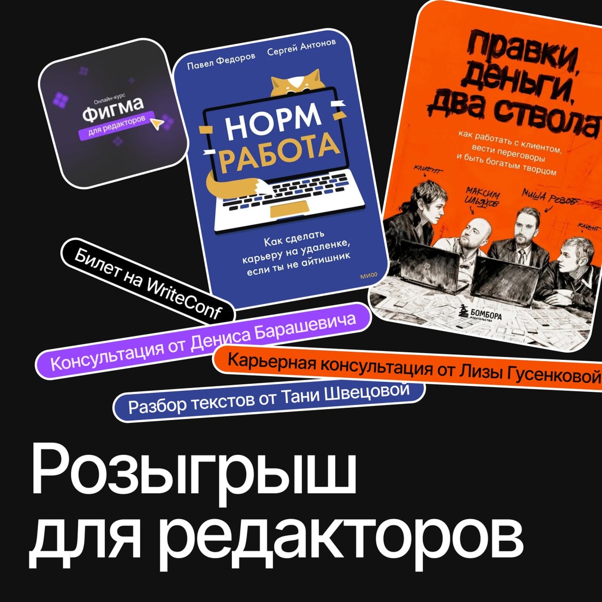 Когда-то курс «Фигма для редакторов» создавался в качестве дипломного проекта в Школе бюро. А сейчас его разыгрывают в крутом редакторском комьюнити. Нам очень приятно, что курс признан гуру нашего сообщества. Кажется, что это наш небольшой успех. А ещё за призовые места в розыгрыше дарят карьерные консультации, билет на редакторскую конфу, суперкнигу от Ильяхова и Розова и всякие другие полезные плюшки. Всё это устроили наши знакомые крутые редакторы, поэтому горячо рекомендуем поучаствовать. Ссылка на подробное описание розыгрыша: https://t.me/eclecthoughts/1295