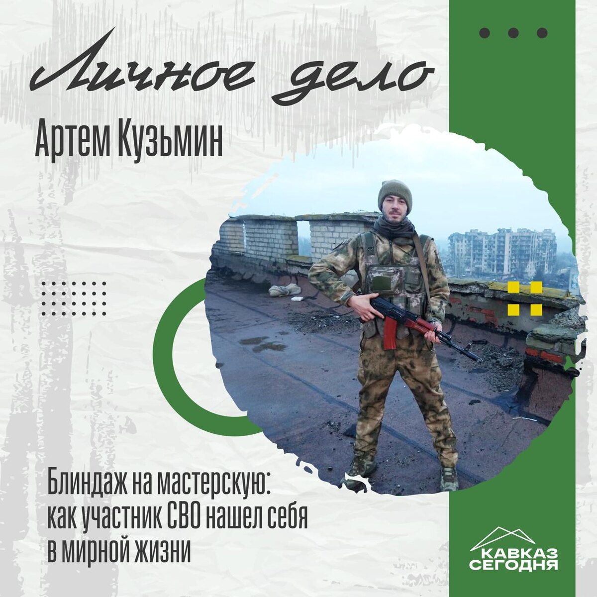 «Позвала Родина» — так о начале мобилизации говорит Артем Кузьмин из ставропольского села Винсады. В сентябре 2022-го, отец тогда еще двух дочерей, твердо и уверенно решил, что надо идти помогать своим. Повестку, которую ждал молодой мужчина, он так и не получил, поэтому без тени сомнения отправился в военкомат добровольцем. — Дома, конечно, все очень переживали, паниковали – понимают же, что это не обычная рабочая командировка, это горячая точка. Но мы сели, поговорили и меня поддержали. Помню то утро, когда уезжал. Я всех проводил на работу, одну дочь в школу, другую в детский сад. Собрался и уехал. До того как надеть спецснаряжение и защитную амуницию Артем вел вполне обычную жизнь: отслужил в армии, получил диплом экономиста, женился, воспитывал детей и трудился в сфере торговли. Специальная военная операция стала для него не только делом чести – помочь своей стране, но и переломным временем, которое изменило его взгляд на обыденные вещи. — Вы, наверное, часто слышите, что там друг