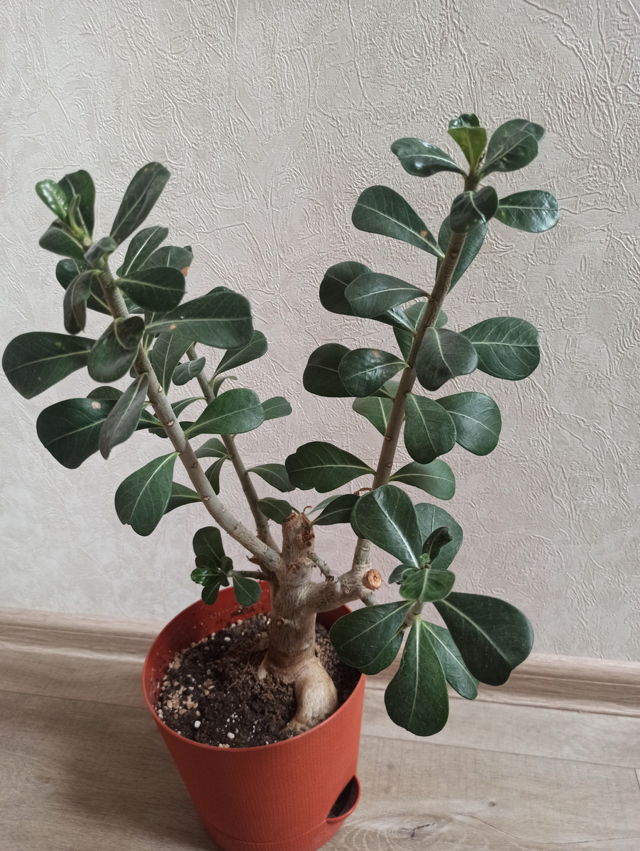Всем привет! Это статья про замечательный цветочек Адениум или Роза пустыни. О нем я писала в статье https://dzen.ru/a/ZHrSJfDfnDgGxXHx. А сейчас расскажу вам, по прошествию времени, свой опыт по выращиванию этого цветочка. Адениум мне очень нравится, и не только своими красивыми цветами в форме колокольчика, но и своим экзотическим видом, даже без цветения. У каждого цветка свой непохожий друг на друга стволик каудекс (это часть ствола, более толстая снизу и заостренная вверху). Форма ствола может быть разной круглой, напоминающей бутылку или шар. Поэтому мне этот цветок очень нравится. Большой адениум (фото ниже) я покупала, другие вырастила из семян. Как оказалось вырастить из семян адениум не так-то и сложно. Приобретала я семена на меркетплейсе и достаточно хорошая оказалась всхожесть, проблем с выращиванием не было. Поэтому кто хочет вырастить адениум самостоятельно можно смело высаживать его из семян! У этого цветка есть одна небольшая особенность: у него периодически желтеют и