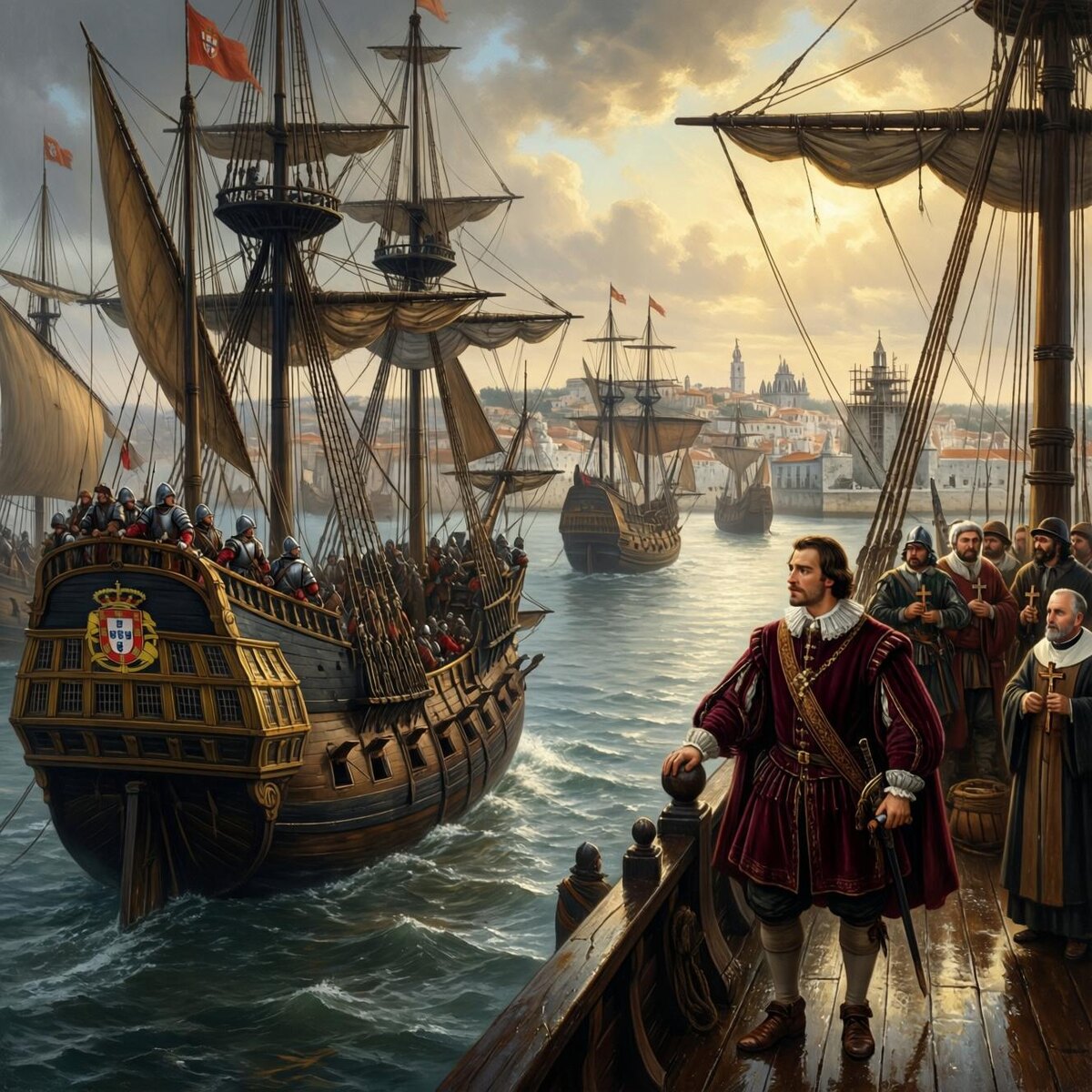 Март 1500 года. Лиссабон. Запах смолы, дегтя и солёного ветра. На рейде Тежу колышется лес мачт, непривычно густой для этой реки. Тринадцать кораблей готовы к отплытию — не просто флотилия, а плавучая крепость и торговый город. Это вторая Индийская армада Португалии. Её задача — не открывать, а закреплять. Два года назад Васко да Гама пробил брешь в стене арабской монополии, проложив путь в Индию вокруг Африки. Теперь король Мануэл I посылает не разведчиков, а оккупантов: 1200 человек, включая солдат для устрашения, купцов для торга и священников для обращения душ. Во главе этой грозной армады стоит не герой да Гама, уставший и, возможно, слишком независимый, а 32-летний придворный Педру Алвариш Кабрал. Аристократ без морского опыта, но с безупречными связями. Историки до сих пор спорят: был ли это расчёт — поставить во главе дипломатичной миссии преданного королю дипломата, а не своенравного морского волка?