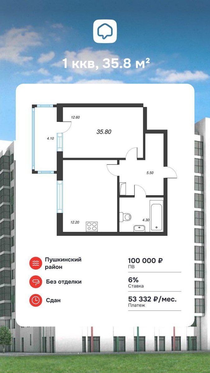 1 ккв, 35.8 м² в Пушкинском районе: • Первый взнос — 100 000 ₽ • Скидка при ипотеке — 30% • Ставка по семейной ипотеке — 6% • Платеж — 53 332 ₽/мес. 📩 Ставьте + в комментариях или напишите админу @azbukadomaspb. Мы отправим вам буклет, планировки с ценами и всю необходимую информацию о жилом комплексе.