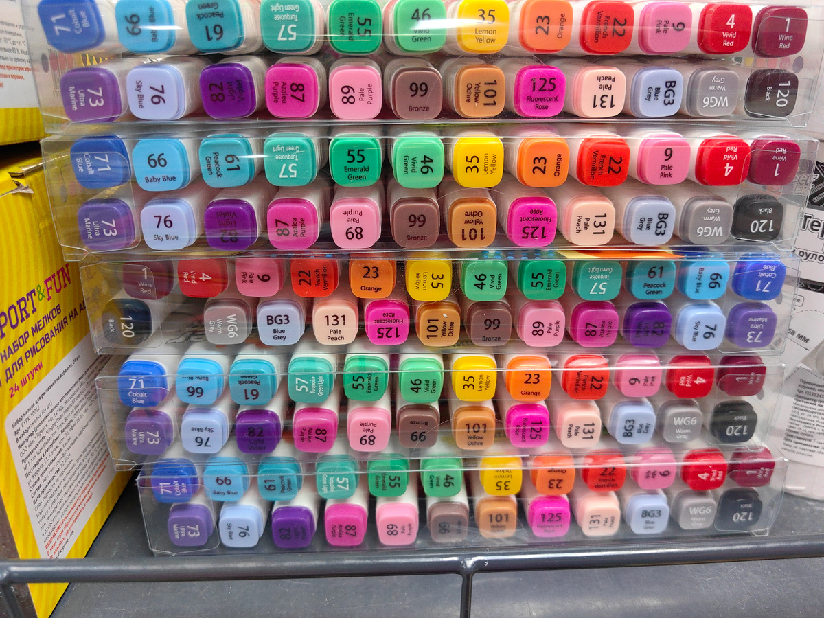 Новинки в Фикс Прайс, ух, столько всего на этот раз. А будет еще больше, продавцы встречают машину с товаром. Не ожидала, таких не было раньше, привезли наборы маркеров. По номерам посмотрела, повторяются, т.е. пока что только один вариант оттенков. Для чего такие? Для рисования, в старших классах можно с такими на ИЗО. Для эскизов, для дизайнерских логотипов, когда нужно быстро "на коленке", без графического редактора, для иллюстраций, для скетчинга подойдут. Маркеры двойные, отличие в толщине наконечника. Минимализм, просто белая основа и надпись. В коробке 24 маркера. В Fix price появилась настольная игра для детей Отгадыватель. Игра с карточками, устанавливаются на подставку с окошечками. Карточки маленькие, каждая будет в пластиковой ячейке. Игра для развития речи, логики. Задаем вопросы, отвечаем "да" или "нет". Так как в коробке две подставки, то и играть в настольную игру вдвоем. На коробке подробно разъяснены правила игры. Не сложно, дети разберутся. Для детей пакетики с