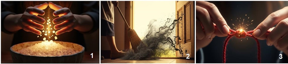 ДЕЙСТВИЯ: Возьмите пачку обычной каменной соли. Откройте ее, поднесите ладони к соли (не касаясь) и произнесите шепотом три раза: “Как соль бела и чиста, так и дом мой будет чист. Все злое, наносное, чужое в себя вбери, от сглаза и порчи мой дом защити. Да будет так!”