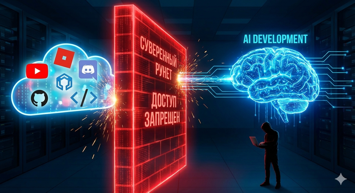 Пока геймеры оплакивают Roblox, а зрители ищут способы ускорить YouTube, ИТ-индустрия столкнулась с куда более серьезной угрозой. Разбираемся, почему политика ограничений — это выстрел в ногу для российской нейро-революции.