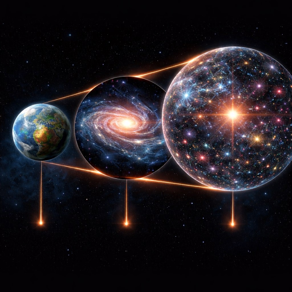 На самом большом уровне мы рассматриваем размеры всей Вселенной. Современные оценки показывают, что наблюдаемая часть Вселенной имеет радиус около 46,5 миллиардов световых лет. Однако сама Вселенная может быть гораздо больше или даже бесконечной.