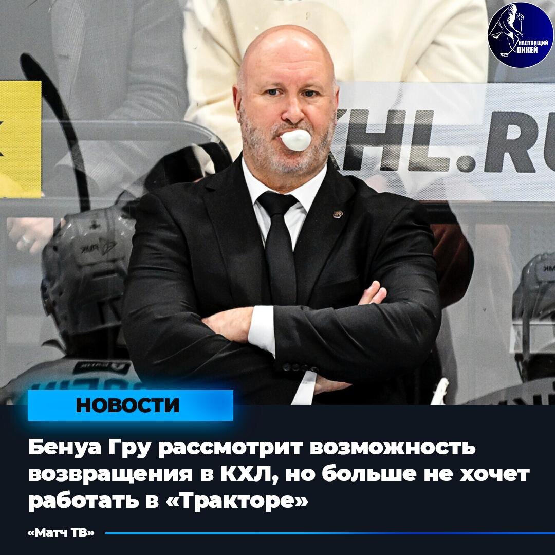 ⚡️ Бывший главный тренер «Трактора» Бенуа Гру рассматривает возможность возвращения в КХЛ. — Бенуа Гру чувствовал себя выгоревшим во время работы в «Тракторе» в этом сезоне. Всё пошло не так с тех пор, как генменеджер Алексей Волков не стал продлевать контракт с вратарем Заком Фукале, чем Гру был очень недоволен. Он из «Трактора» не сбежал, а просто почувствовал, что больше ничего не может дать этой команде. До конца сезона он поработает в Швейцарии. А потом будет рассматривать разные варианты работы, включая КХЛ, где уже сделал себе имя. Правда, Гру делает одно исключение — в «Трактор» он больше идти не хочет, — сообщил «Матч ТВ» источник. 📱 Подпишись на НАСТОЯЩИЙ ХОККЕЙ