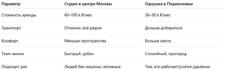 🏙️ Студия в центре Москвы vs однушка в Подмосковье: что выгоднее и удобнее?