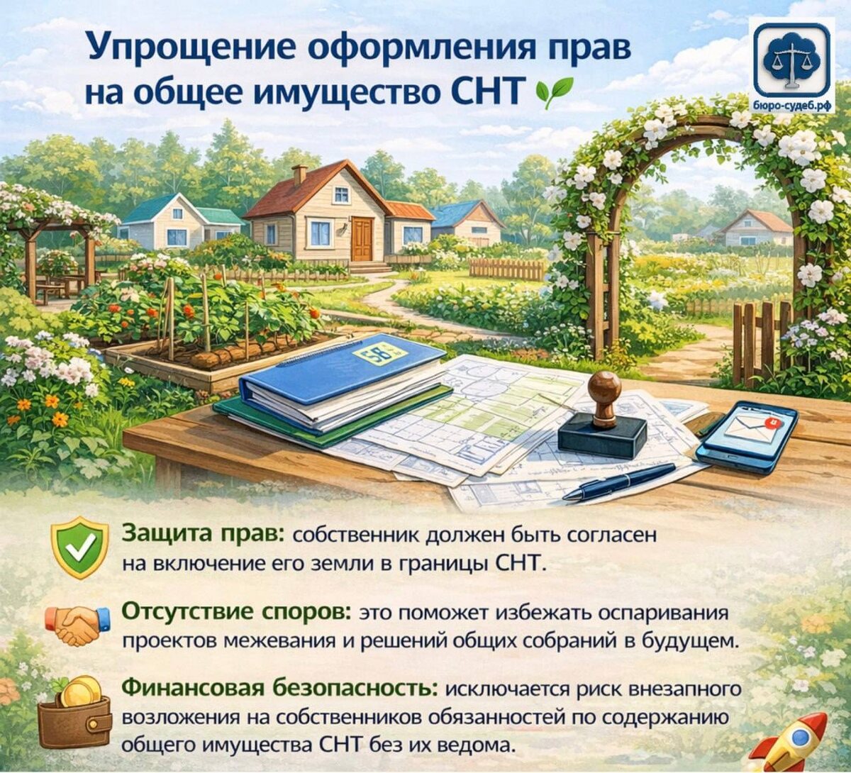В последнее время в СМИ активно обсуждается законопроект Росреестра, призванный упростить процедуру оформления прав на общее имущество СНТ. И мы писали об этом ранее… Рассказываем о важных поправках в части уточнения требований к земельным участкам. 📍 Как это работает сейчас? На основании Закона № 217-ФЗ общее собрание членов СНТ может принять решение о внесении изменений в проект межевания территории, в том числе для изменения её границ. Это происходит, например, при включении новых участков общего пользования или садовых участков, чьи собственники решили вступить в товарищество. ✅ Что изменит новый законопроект? Документ предусматривает обязательное получение согласия собственников участков, которые СНТ планирует включить в свои границы. 🛡 Зачем это нужно? 1. Защита прав: собственник должен быть согласен на включение его земли в границы СНТ. 2. Отсутствие споров: это поможет избежать оспаривания проектов межевания и решений общих собраний в будущем. 3. Финансовая безопасность: