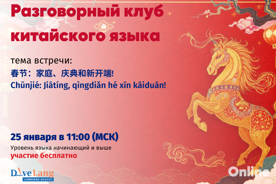Тема встречи: 春节:家庭、庆典和新开端! Chūnjié: Jiātíng, qìngdiǎn hé xīn kāiduān! 👨🏫 Преподаватель: Александра 📍 Онлайн, в Яндекс Телемост *чтобы без задержек присоединиться к встрече, скачайте приложение Яндекс Телемост Приглашаем вас на особую предновогоднюю встречу нашего разговорного клуба, где мы окунемся в самую главную и теплую пору года — Праздник Весны (春节 Chūnjié)! На этой встрече мы: ✅Встретим «Нян» и пригласим удачу! Узнаем, почему красный цвет, фейерверки и иероглиф «福» (fú) — настоящие герои праздника. ✅Обсудим, что обязательно должно стоять на столе в 团圆饭 (tuányuán fàn) и какое скрытое значение у рыбы吧пельменей. ✅Отправимся в «Весеннее переселение»! Поймем феномен 春运 (Chūnyùn) и почему для китайцев «вернуться домой» — это не просто поездка, а священный ритуал. ✅Поговорим о традиции 红包 (hóngbāo) и выучим самые важные новогодние поздравления, чтобы блеснуть знаниями. Ждем всех, кто готов делиться, задавать вопросы и создавать праздничное настроение вместе! Давайте встретим Год кр