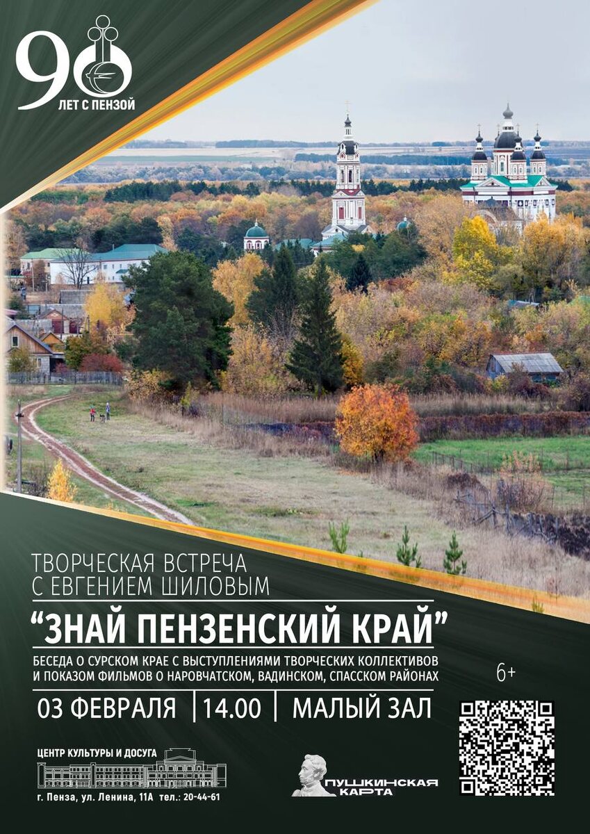 " Приглашаем на виртуальную экскурсию по районам Пензенской области: Наровчат, Спасск, Вадинск. 🎤 В ходе мероприятия автор-режиссер Евгений Шилов расскажет о районах Пензенской области и ответит на интересующие вопросы. 🎶 В программе - выступление творческих коллективов Центра культуры и досуга. 6+ * ПУШКИНСКАЯ КАРТА ✅ Онлайн билеты: https://iframeab-pre7560.intickets.ru/seance/69829432/ 📞 Касса: 20 44 61