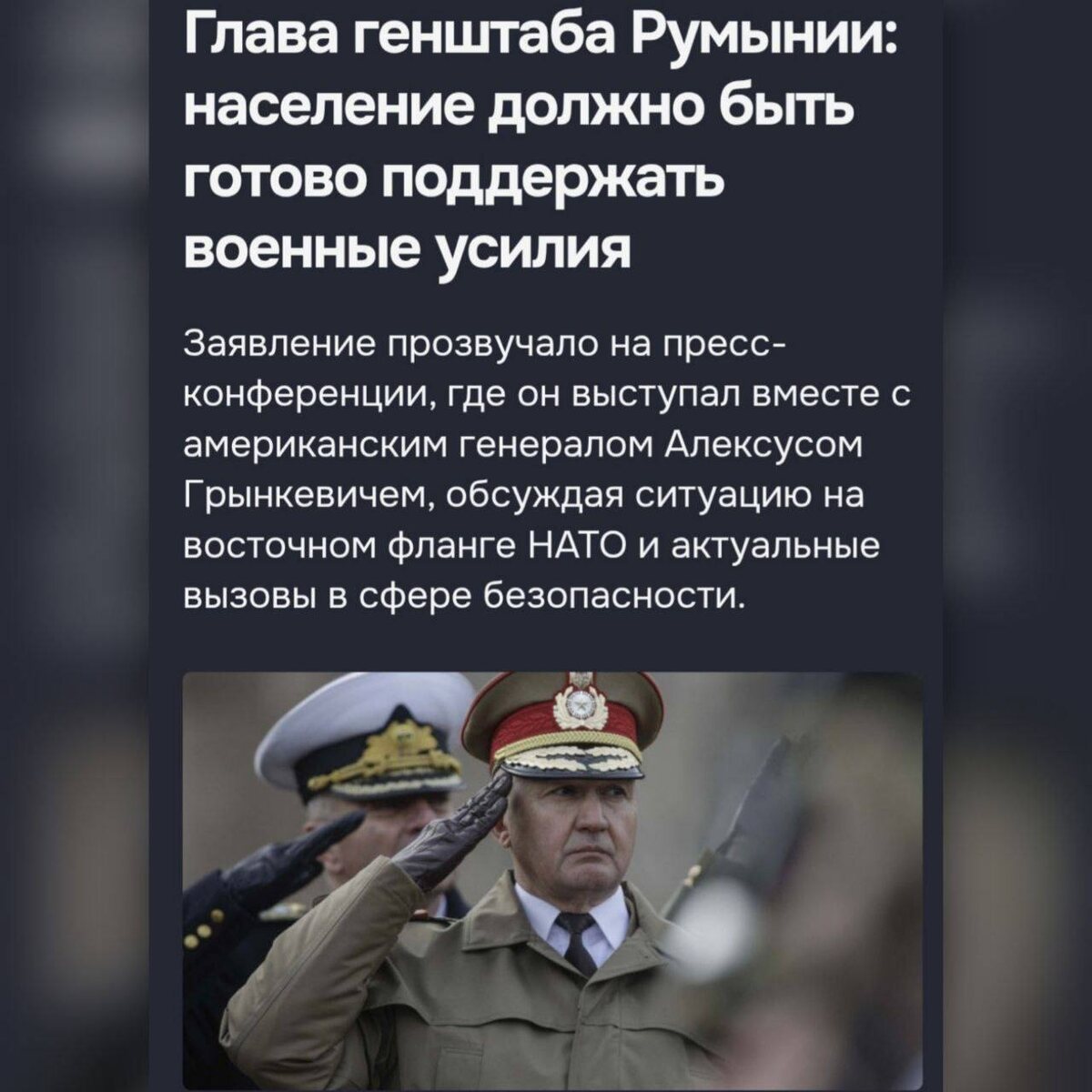 НГШ МО Румынии заявил, что страна готовится к возможной войне.