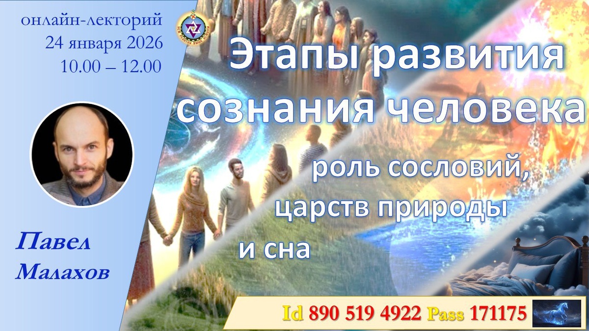 ✍️ТЕМА : "ЭТАПЫ РАЗВИТИЯ СОЗНАНИЯ ЧЕЛОВЕКА. Роль сословий, царств природы и сна". 👩🎓СПИКЕР: Павел Николаевич Малахов, Отделение "Свет Истины", г. Кемерово. 🔔 ДАТА ВЫСТУПЛЕНИЯ: суббота, 24 января 2026 г., Начало в 10:00 (время московское). ❗️ЯЗЫК ДОКЛАДА - русский. ⏺️⏺️⏺️Вход в ZOOM: www.zoom.us Id: 890 519 4922 Pass: 171175 ⚡️Быстрый вход в лекторий по ссылке: https://clck.ru/37Q6hC 👉Предварительная регистрация и установка программ - не нужны. Участие - бесплатное. Включение вашей персональной камеры - не требуется. ‼️Все вопросы вы можете направить по адресу: secretary@ts-russia.org ☀️Добро пожаловать!