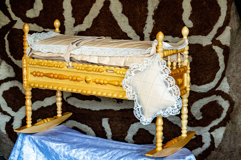 Приходится слышать, что люлька вредит здоровью младенца. В нашем народе не принято говорить о своих детях, но у меня четверо сыновей и все они выросли в бешик. Я уверена: ничего удобнее люльки бешик для ребенка и матери еще не придумали. Люлька облегчает жизнь женщине — нет необходимости укачивать ребенка на руках. Пока он спит, можно заняться домашними делами. Но самое главное — в зафиксированном состоянии младенец находится в безопасности, он более спокойный и высыпается. За счет пеленания обеспечивается неподвижность, а значит, он не поцарапает себя, не испугается того, что шевелит ручками или ножками.