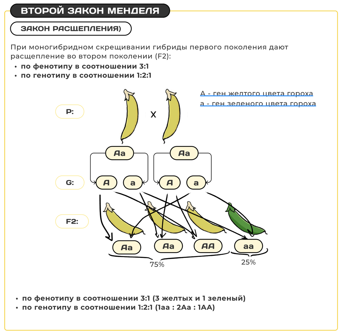 Закон расщепления (2й закон Менделя)