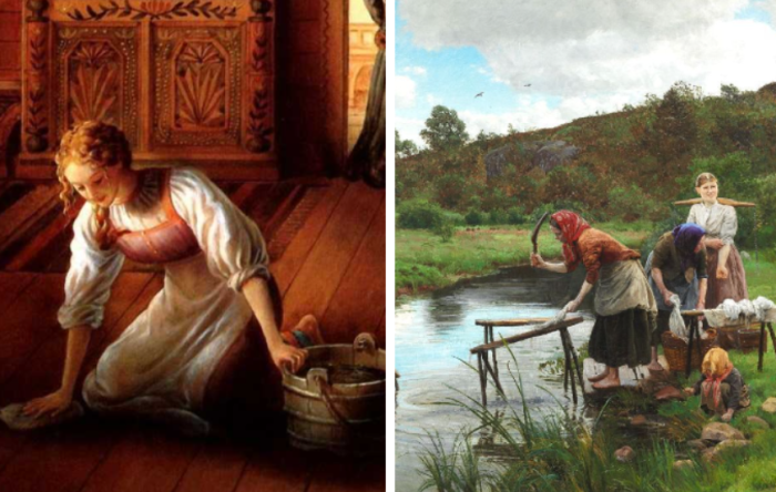 Крестьяне придавали особое значение правильной сортировке вещей перед стиркой. Это было связано с духовными суевериями, согласно которым раздельная стирка помогала избежать негативного влияния на семью.