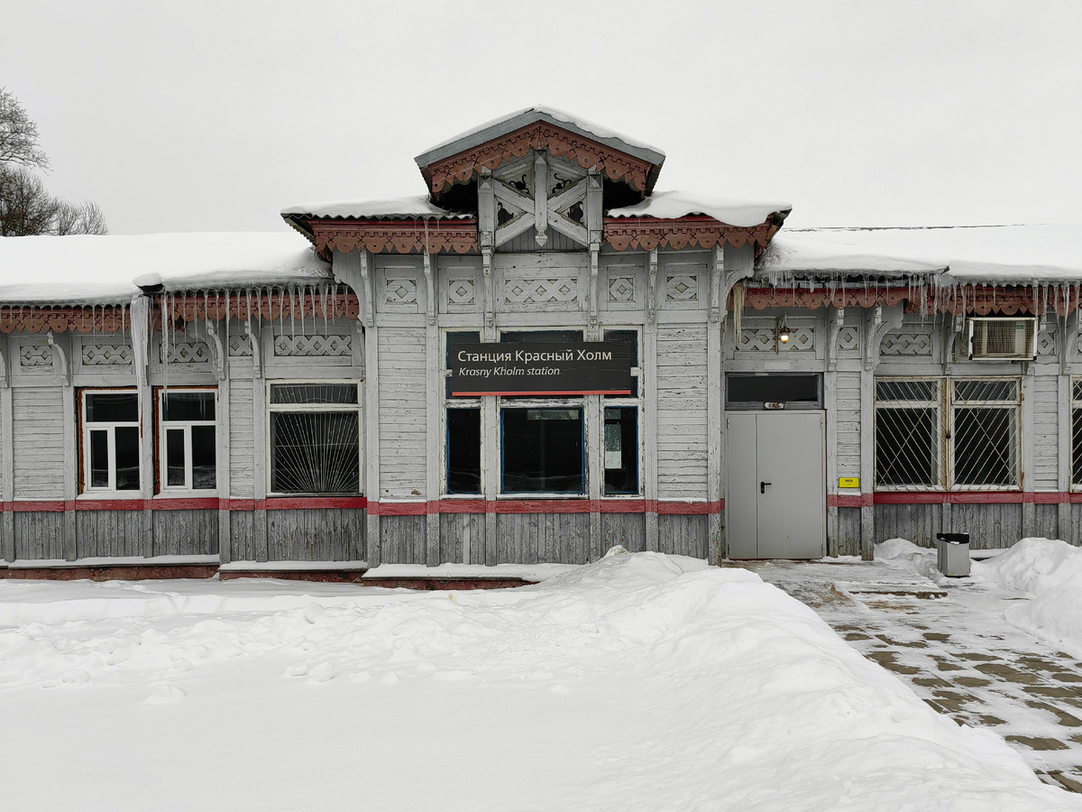 Очередное старое здание железнодорожного вокзала попалось на моём пути во время поездки в Тверскую область. На этот раз красоту я встретил не в самом известном городе, который называется Красный Холм. Данный участок пути был построен как часть Московско-Виндаво-Рыбинской железной дороги. Станция появилась в 1899 году. Московско-Виндаво-Рыбинская железная дорога - частная железнодорожная компания в Российской империи, строившая железные дороги на северо-западе страны на территории современных государств: России, Беларуси, Латвии. Движение на ней было открыто в 1870 году. Московско-Виндавская линия вводилась в эксплуатацию постепенно, отдельными участками, но сооружалась как единый ансамбль. Здания и сооружения I и II классов были построены из камня, с цементными, бетонными или металлическими перекрытиями. Здания станций III и IV классов были деревянными. Вокзал станции Красный холм относился к IV классу. С середины 19 века в этих местах было построено много рядом расположенных станци