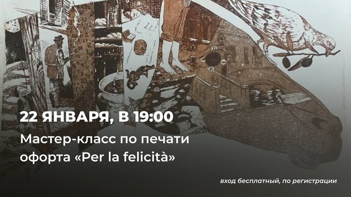 22 января в 19:00, приглашаем на мастер-класс по печати офорта «Per la felicità» в рамках выставки группы «Морской конек