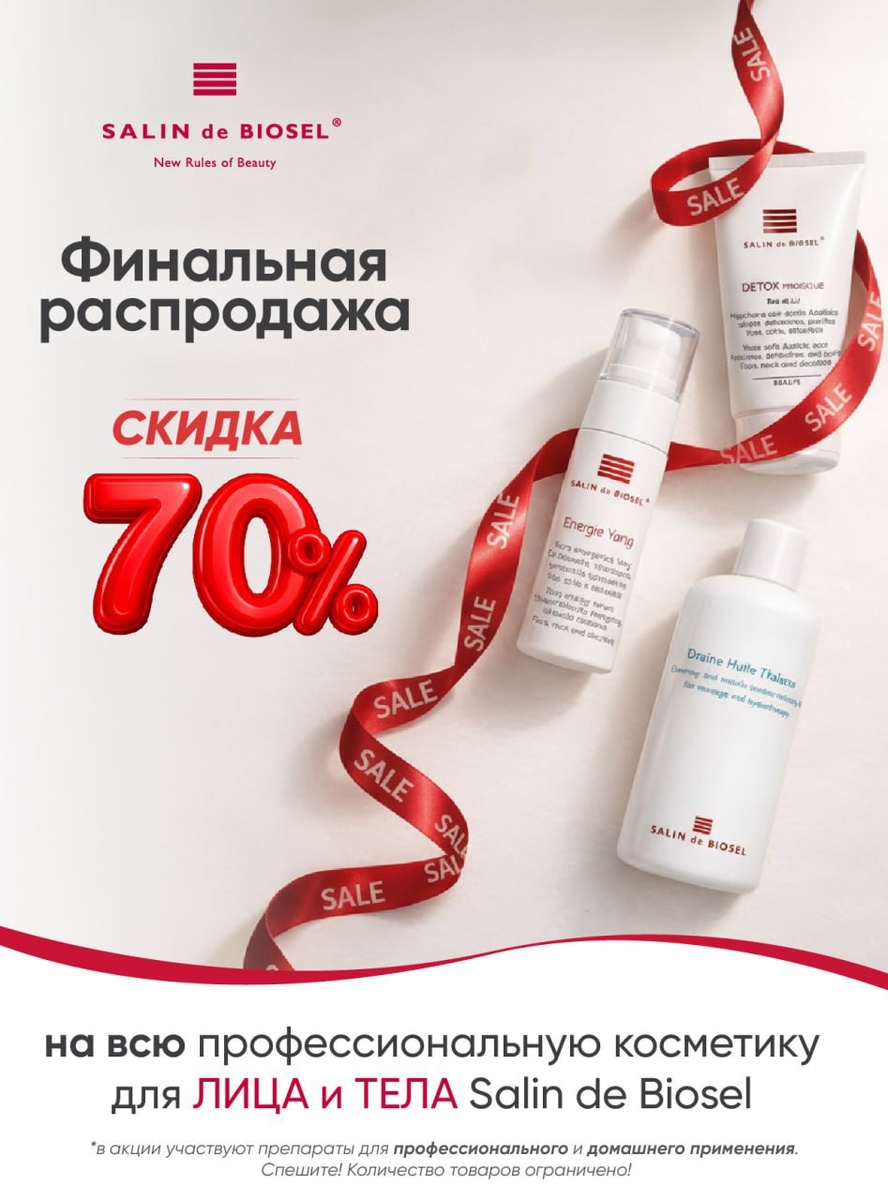 Финальная распродажа. Последняя возможность забрать профессиональные средства для лица и тела по максимальной скидке. В акции участвуют: — средства для профессионального применения — продукты для домашнего ухода Количество позиций ограничено. Повторов не будет. Salin de Biosel — профессиональный бренд с индивидуальным подходом к коже. Формулы создаются на основе растительных биокомпонентов и подбираются с учётом конкретных потребностей кожи — как для работы в кабинете, так и для поддержки результата дома. Если вы давно хотели познакомиться с брендом или пополнить рабочие позиции — сейчас лучший момент.