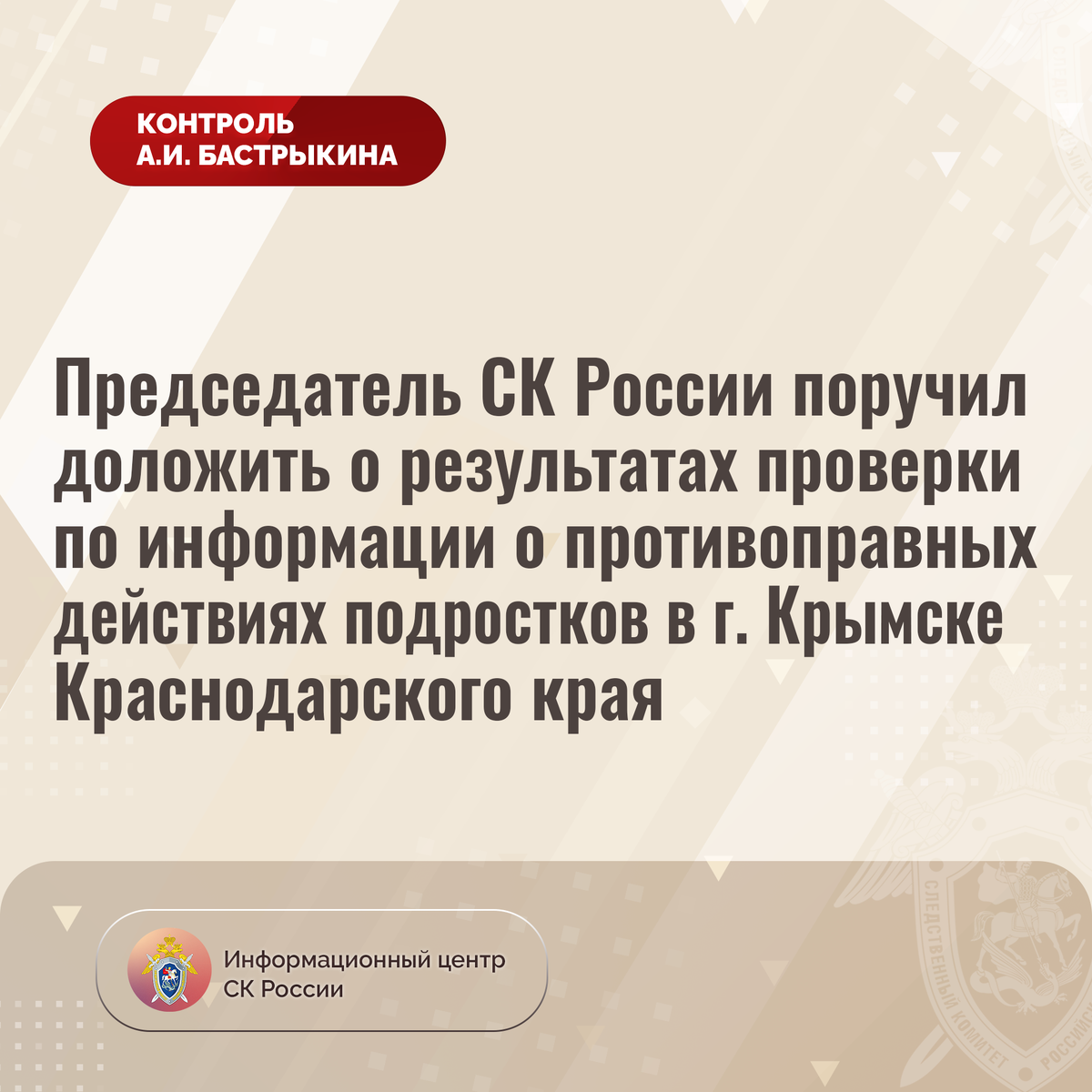 Председатель СК России поручил доложить о результатах проверки по информации о противоправных действиях подростков