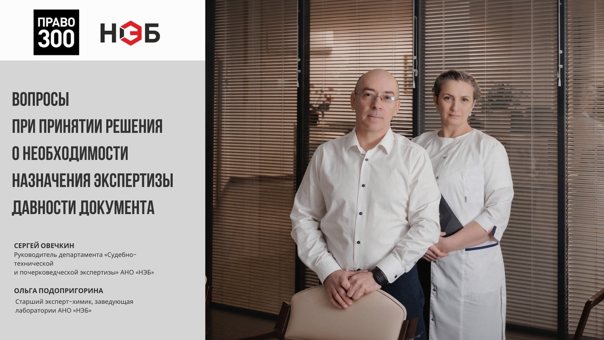 На правовом портале Право-300 опубликована статья Руководителя департамента «Судебно-технической и почерковедческой экспертизы» АНО «НЭБ» Сергея Овечкина и Старшего эксперта-химика, заведующей лабораторией АНО «Национальное экспертное бюро»* Ольги Подопригориной: При спорах о подлинности договоров, расписок и иных доказательств суды сталкиваются с вопросом о том, когда именно был изготовлен документ. Экспертиза давности может стать ключевой, если есть сомнения в дате подписания, появлении документа в деле или попытках задним числом изменить обстоятельства. О том, когда ее имеет смысл назначать, какие ограничения важно учитывать и чего от нее не стоит ожидать, Вы можете узнать в полной версии статьи. *АНО «Национальное экспертное бюро» учреждена Консалтинговой группой «Альянс Лигал».