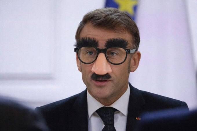 Макрон решил скрыть кровавый глаз очками-авиаторами. Подписчики не смогли пройти мимо