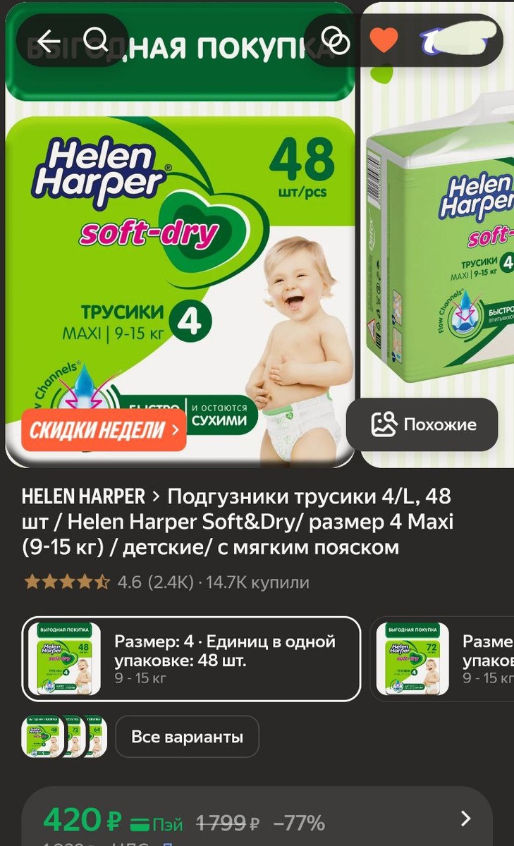 π¨π»ΠΠΎΠ΄Π³ΡΠ·Π½ΠΈΠΊΠΈ ΡΡΡΡΠΈΠΊΠΈ 4/L, 48 ΡΡ / Helen Harper Soft&Dry/ ΡΠ°Π·ΠΌΠ΅Ρ 4 Maxi (9-15 ΠΊΠ³) / Π΄Π΅ΡΡΠΊΠΈΠ΅/ Ρ ΠΌΡΠ³ΠΊΠΈΠΌ ΠΏΠΎΡΡΠΊΠΎΠΌ - 420Ρ (Ρ.ΠΏΡΠΉ