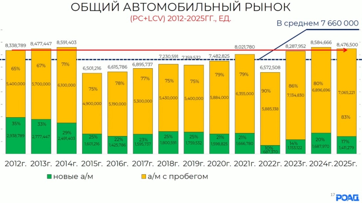 За последние 15 лет на авторынке проходило ежегодно в среднем около 7,66 млн сделок с автомобилями.