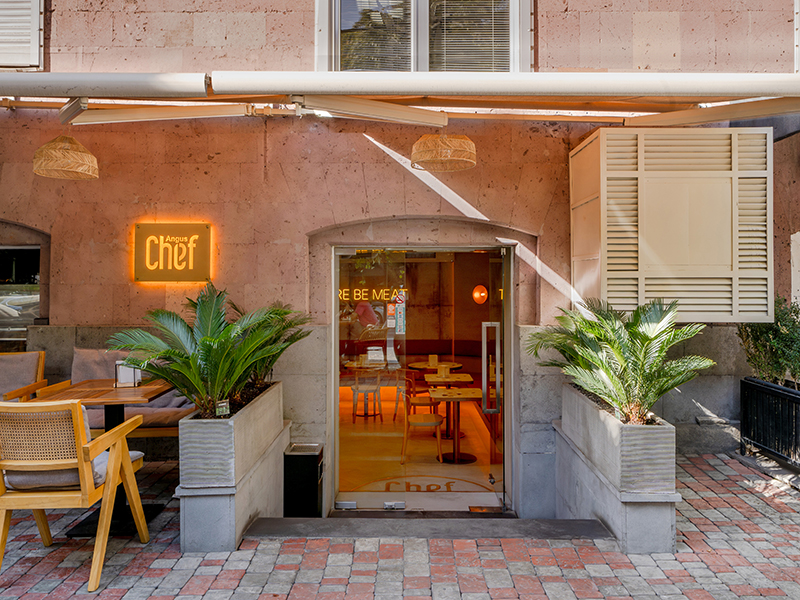 Этот проект предлагает идеальное сочетание вкусной еды и гостеприимной атмосферы. Вы можете полностью погрузиться в теплую, располагающую обстановку с насыщенными древесными тонами и яркими желтыми и оранжевыми оттенками, создавая незабываемые впечатления от ужина. Разрабатывая дизайн Angus Chef, наша команда сосредоточилась на создании теплой и располагающей атмосферы, в которой гости могут с комфортом наслаждаться трапезой. Для достижения этой цели мы разместили большой угловой диван в центре помещения, где друзья и семья могли бы собираться и наслаждаться едой в комфортной обстановке. Кроме того, кухонная зона отделена от обеденной зоны стильным барным столом с потрясающим неоновым логотипом, который подчеркивает общий характер ресторана. Хотите увидеть больше наших работ?