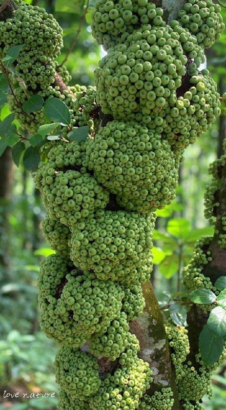 (Ficus racemosa). Эти виды известны своей уникальной привычкой роста, называемой каулифлорией, когда плоды растут густыми гроздями непосредственно от ствола и ветвей. Эти инжиры являются ключевым видом в лесах Юго-Восточной Азии, обеспечивая пищу для дикой природы. Ficus variegata обычно имеет грушевидную форму и при созревании становится зелёным с розово-красными полосами. Ficus racemosa также известен как красный речной инжир или гуляр и родом из Австралии и тропической Азии.