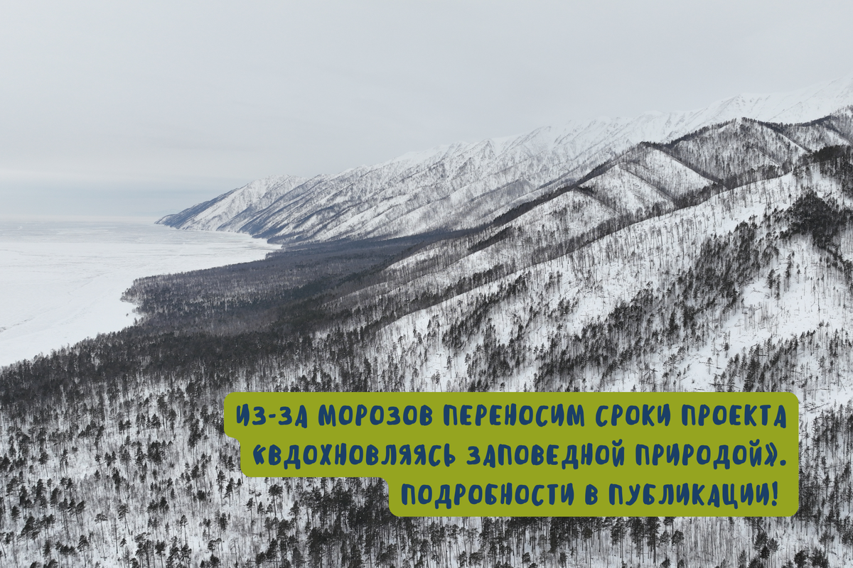 Берём паузу на морозы, чтобы вернуться с ещё большим вдохновением Друзья, в последние дни природа Бурятии показала свой суровый характер. Холод повлиял на работу многих школ, и мы понимаем, что в таких условиях для проведения экологического урока нужно больше времени. По многочисленным просьбам, а также чтобы обучение и творчество проходили в комфортном ритме, мы решили немного сдвинуть сроки проекта «Вдохновляясь заповедной природой», который стартовал ко Дню рождения Баргузинского заповедника. Пусть будет больше времени на получение знаний и поиск ярких идей. Мы с нетерпением ждём творческих результатов ваших учеников, не забывайте присылать их работы! Спасибо, что согреваете наш проект своим интересом и любовью к заповедной природе!