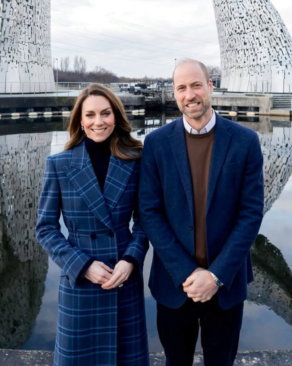 Принцесса Уэльская снова показала, как легко можно соединить королевский стиль с уважением к местным традициям. Сегодня Кейт и принц Уильям прибыли в города Стерлинг и Фолкерк, чтобы обратить внимание на уникальное шотландское наследие и показать, как традиции продолжают объединять сообщества и вдохновлять новое поколение. Для этой поездки 44-летняя Кейт выбрала синее с принтом тартан пальто от Kayesco, которое стало основой её образа. Под пальто она надела черную водолазку от Zara, добавив классический и уютный акцент, а шотландский килт Lekilt x Johnstons of Elgin придал наряду традиционный шотландский колорит. Образ завершали элегантные черные сапоги Gianvito Rossi, а драгоценные сапфирово-бриллиантовые серьги, подаренные Кейт незадолго до свадьбы в 2011 году, внесли нотку сентиментальности и утончённой роскоши. День начался с посещения The Kelpies — двух впечатляющих 30-метровых стальных конских голов, где герцог и герцогиня узнали о мифологии и мастерстве, воплощённом в этих мону