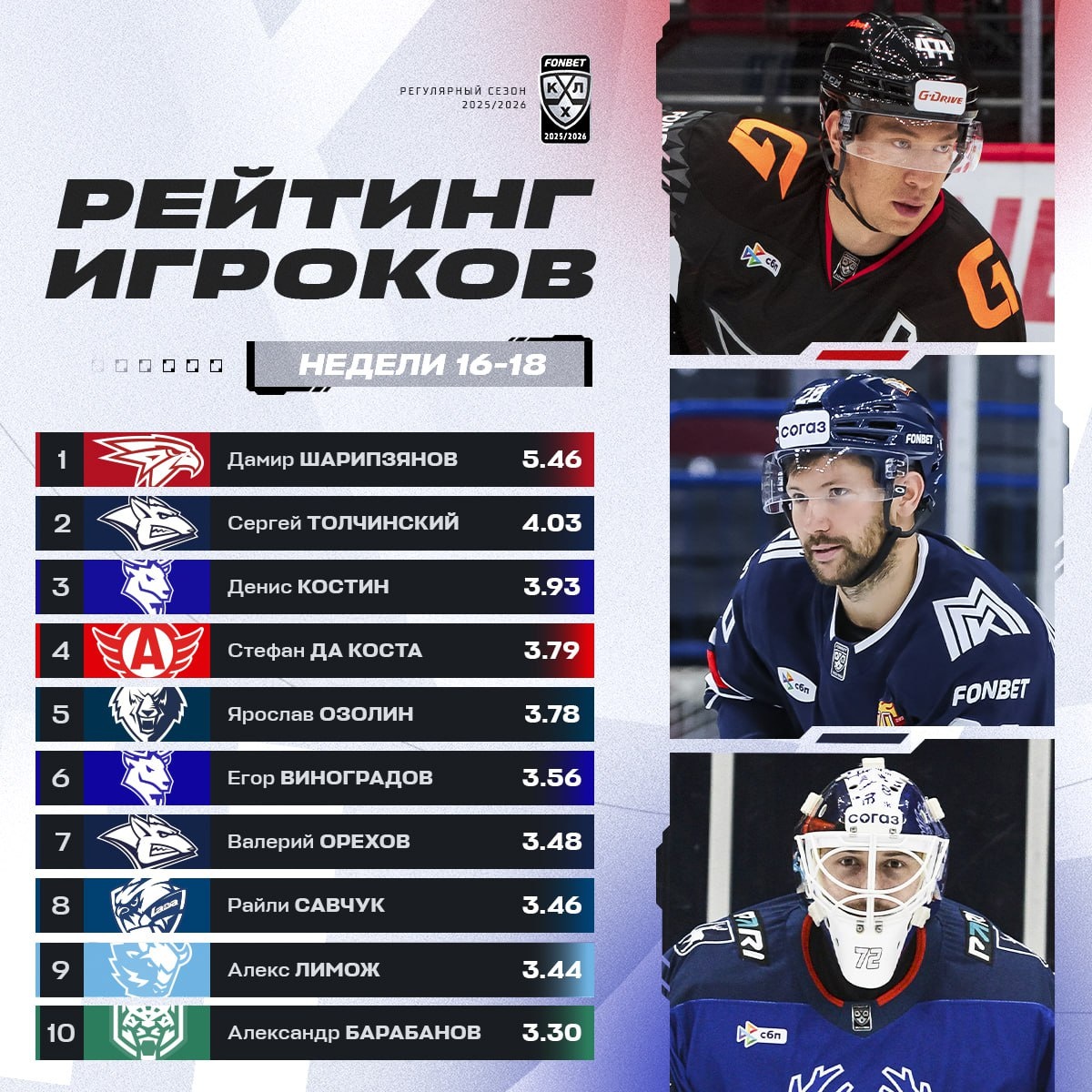 В новом Рейтинге игроков смена тройки лидеров.