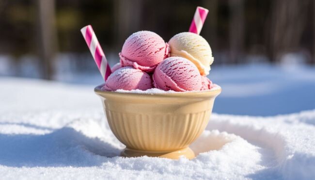 Из-за снежной зимы в соцсетях завирусился новый тренд — приготовление мороженого прямо на снегу. Как сделать нашумевший десерт «Пломбир в сугробе» читателям расскажет «МОЁ!».