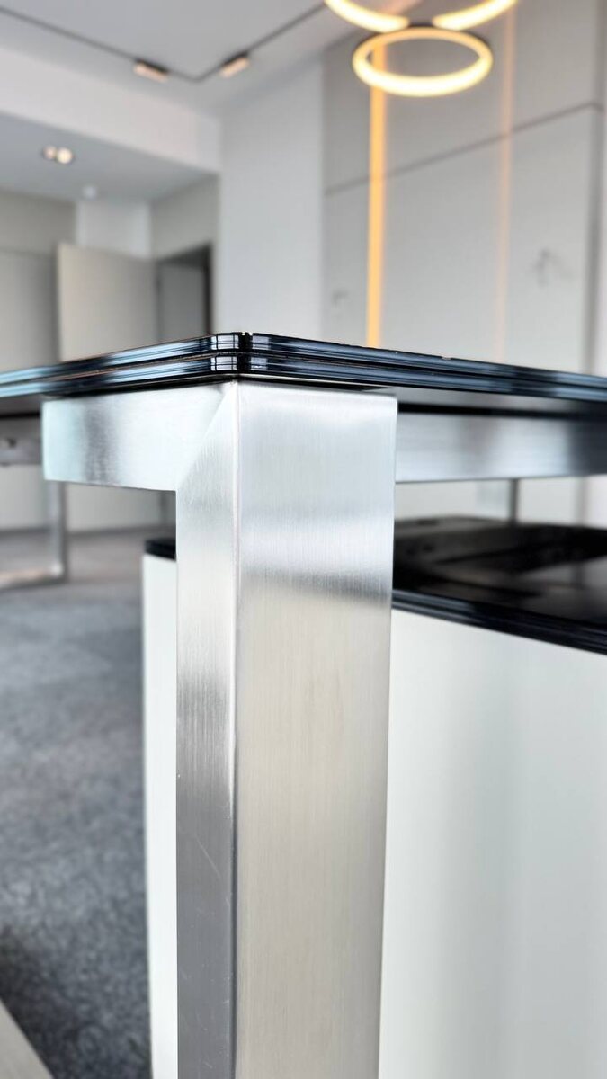 Мы используем закалённый триплекс 16 мм, когда стекло должно не привлекать внимание, а удерживать фокус. Blackout — это: ▪️ отсутствие визуального шума ▪️ ощущение монолитности ▪️ спокойный, собранный интерьер ▪️ логика hi-tech не на словах, а в материале Этот проект — пример того, как деталь формирует культуру офиса. Если откликается такой подход — значит, мы говорим на одном языке.