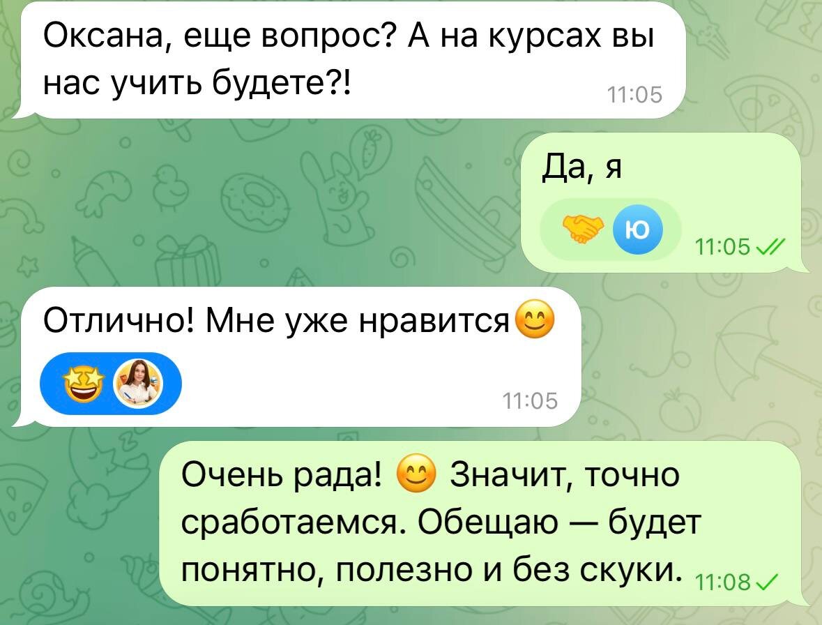 Вот за такие моменты я и люблю свою работу — когда ещё до начала курса уже есть доверие и улыбки 😊