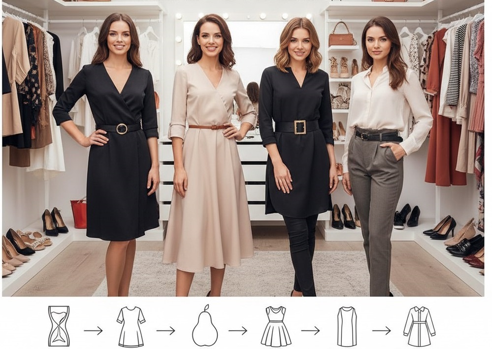 Секрет стильного образа не в размере на этикетке, а в умении сбалансировать пропорции. Вот краткий гид по основным типам фигур с конкретными приемами. 1. Песочные часы (Плечи и бедра равны, выражена талия) Задача: Подчеркнуть природную гармонию, не перегружая силуэт. 2. Груша (Бедра шире плеч) Задача: Визуально расширить плечевой пояс, чтобы уравновесить низ. 3. Перевернутый треугольник (Плечи шире бедер) Задача: Добавить объем бедрам и визуально сузить плечи. 4. Прямоугольник (Плечи, талия и бедра примерно одной ширины) Задача: Создать иллюзию изгибов или подчеркнуть стройность. 5. Яблоко (Объем в области живота, стройные ноги) Задача: Отвлечь внимание от центра туловища и показать ноги. Золотое правило для всех: