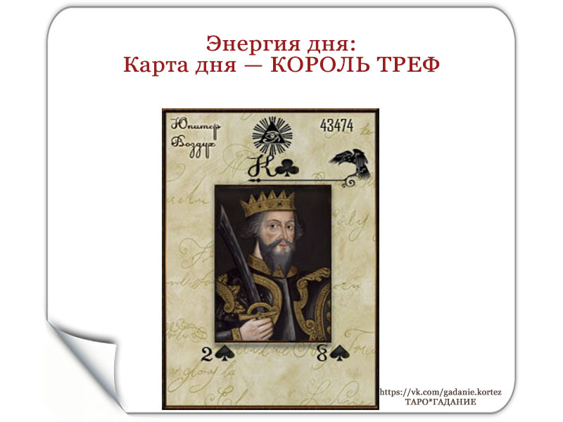 Гадание на день: Карта дня — КОРОЛЬ ТРЕФ Общая характеристика дня: Сегодняшний день проходит под знаком рациональности, практичности, логики и контроля. Король Треф — это правитель материального мира, стратег, управленец и человек дела. Он символизирует зрелость, ответственность и умение добиваться целей хладнокровным расчётом. Что это значит для вас сегодня: Что благоприятно: Что неблагоприятно: Для личного обращения -эл.почта- nengvuer@mail.ru, лс- ВК. Личный посыл: Сегодняшний день даёт вам власть над обстоятельствами через труд и ум. Используйте этот шанс, чтобы укрепить свои позиции и заложить прочный фундамент для будущего. День требует от вас быть хозяином положения. #КартаДня #КорольТреф #ГаданиеНаДень #КартаНаСегодня #ЭнергияДня #Практичность #Стратегия #УспехВДелах #Лидерство #ТрезвыйРасчет #ДеньРешений #Таро #РаскладНаДень #СоветОтКарт #КорольКрестей