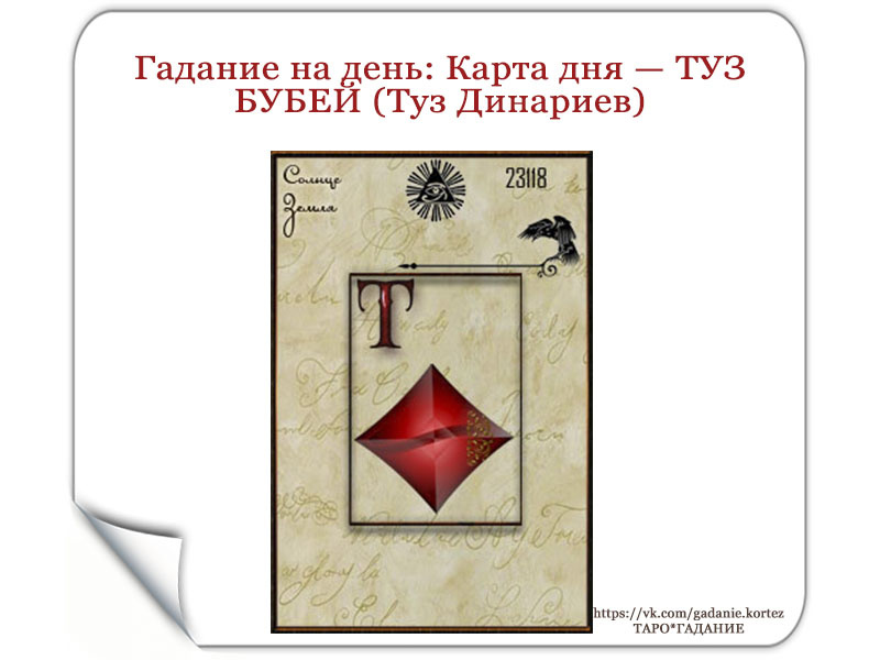 Гадание на день: Карта дня — ТУЗ БУБЕЙ (Туз Динариев) Общая характеристика дня: Сегодняшний день находится под влиянием Туза Бубей — это мощнейшая карта новых материальных начинаний, финансовых возможностей и процветания. В воздухе витает энергия старта, получения ценного ресурса и закладки фундамента будущего изобилия. Что это значит для вас сегодня: Что благоприятно: Что неблагоприятно: Личный посыл: Туз Бубей в ваших руках — это чистая потенция богатства и стабильности. День призывает вас осмелиться по-новому взглянуть на свои ресурсы и таланты. Даже маленькое, но новое начинание, сделанное сегодня, может стать источником большого роста. Ваше процветание начинается с одного верного решения или действия. Для личного обращения -эл.почта- nengvuer@mail.ru, лс- ВК. #КартаДня #ТузБубей #ТузДинариев #ГаданиеНаДень #НовыеНачала #ФинансовыеВозможности #ИсточникДохода #Изобилие #Процветание #СтартПроекта #ДеньШансов #Таро #КартаНаСегодня #ДенежнаяУдача #ИнвестицииВСебя