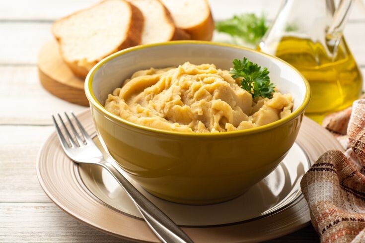 Фава — это не бобы и не хумус. Это классическое гороховое пюре, которое готовят из жёлтого колотого гороха. Можно в пост.