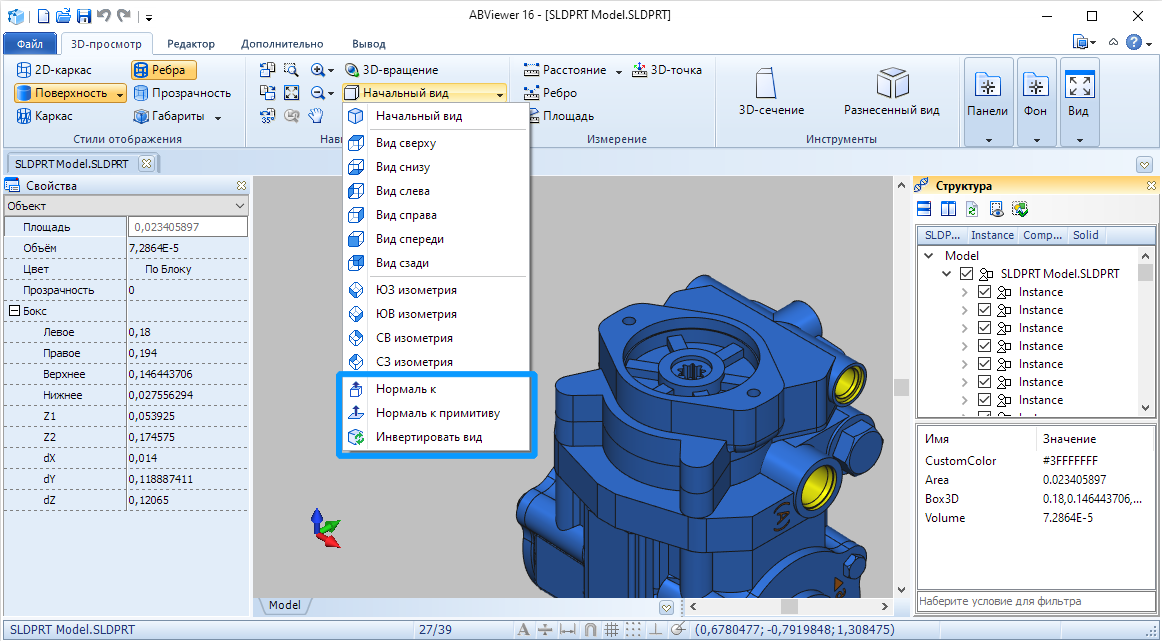 В ноябре 2025 года вышла ABViewer 16, новая версия популярной CAD-программы, которая значительно расширяет возможности работы с чертежами и 3D-моделями. Разработчики улучшили интерфейс, оптимизировали инструменты измерения, конвертации и генерации G-кода, сделав работу с проектами быстрее и удобнее. ABViewer 16 выводит 3D-визуализацию на новый уровень. Программа теперь поддерживает расширенный импорт форматов STEP, SLDPRT, X_T, X_B и ACIS, а экспорт в STEP и ACIS стал более стабильным и точным. Появились новые виды отображения: Инструмент «Габариты» получил новые возможности: измерять отдельные элементы и рассчитывать ориентированный минимальный габаритный контейнер. Дополнительно появилась функция подсчёта суммы измерений, что особенно полезно при работе с крупными 3D-объектами. В новой версии улучшена работа с двухмерными чертежами. ABViewer 16 поддерживает экспорт DWG и DXF версий 2010, 2013 и 2018, а также улучшенный импорт и экспорт форматов DWG, DXF, DWF, HPGL, SVG и PDF. Инструм