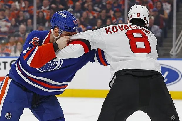 Российский хоккеист Василий Подколзин защитил капитана «Эдмонтон Ойлерс» Макдэвида в матче против «Нью-Джерси Дэвилс», вступив в драку. Несмотря на поражение команды (2:1), Подколзин продемонстрировал решительность и лояльность. В текущем сезоне он забросил 12 шайб и сделал 11 передач. 📢 Подробнее: uralnovosti.ru 🏞 Фото автора: lenta.ru 📢 Подписывайтесь на наш канал: uralnovost